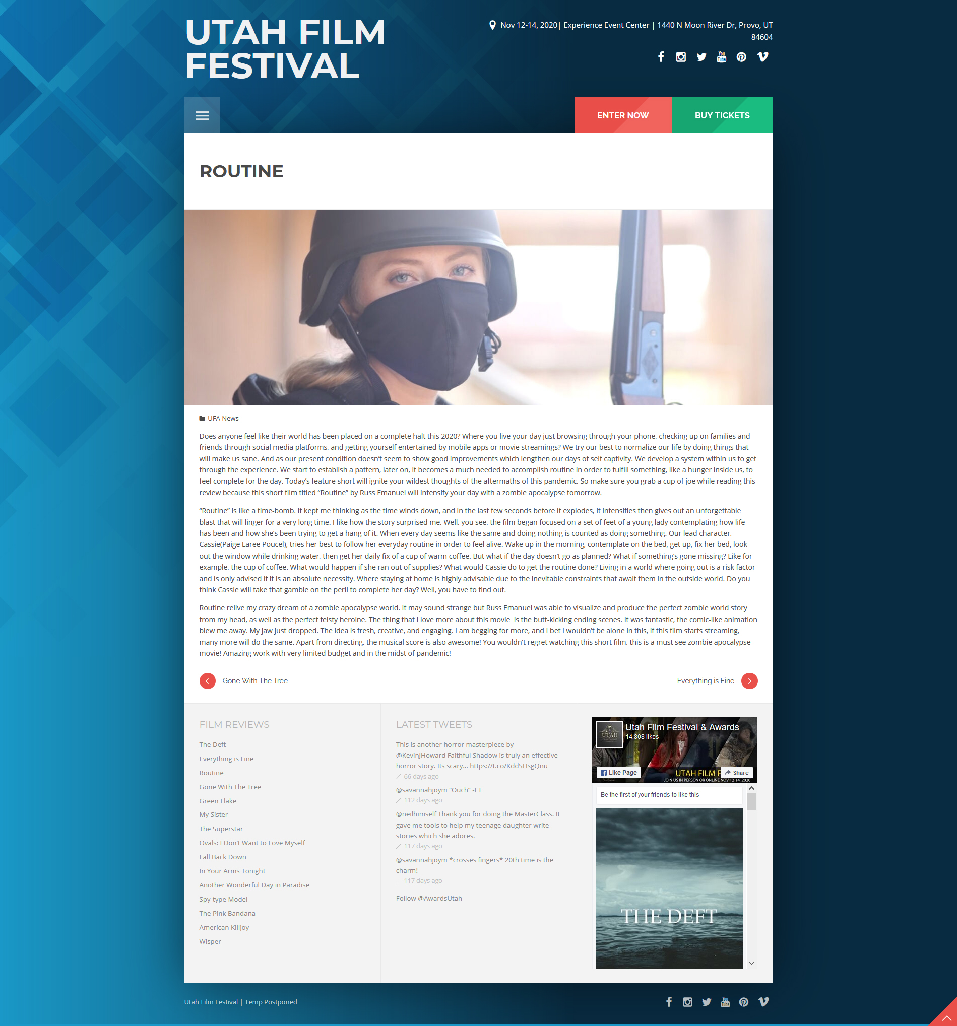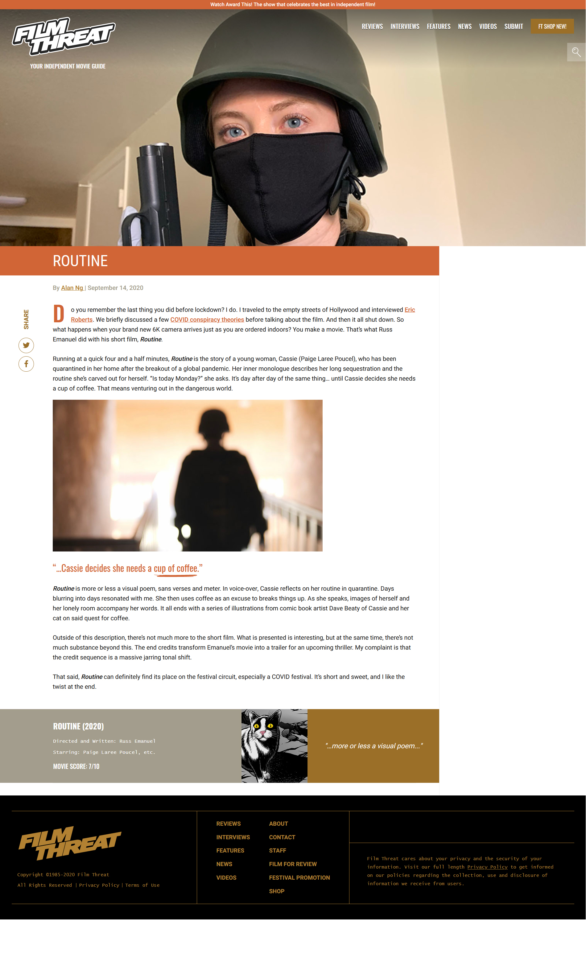 Routine California Premiere at the FANtastic Horror Film Festival - Best Short, Best Director Short Nominations.