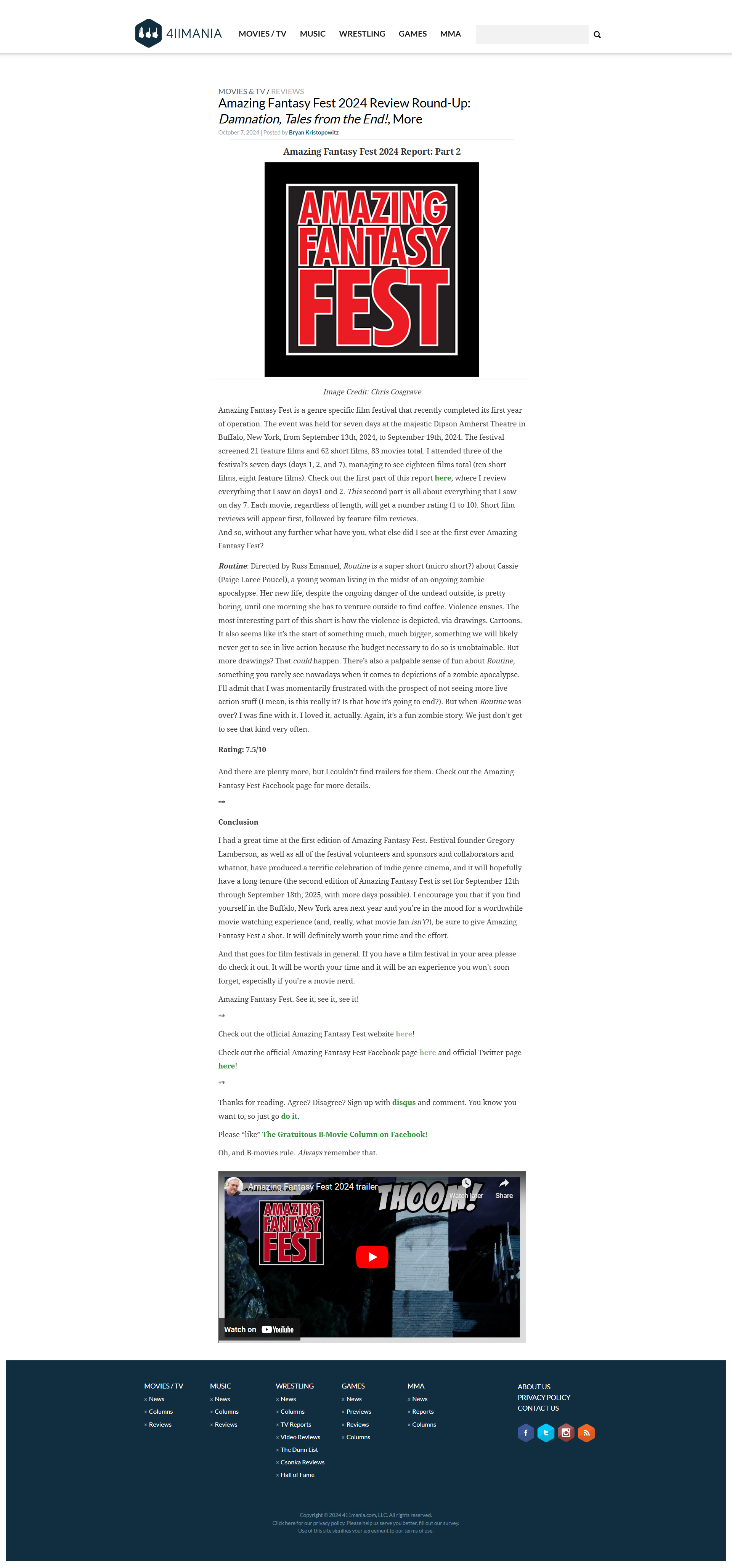 Bryan Kristopowitz of 411 Mania writes a Routine review.