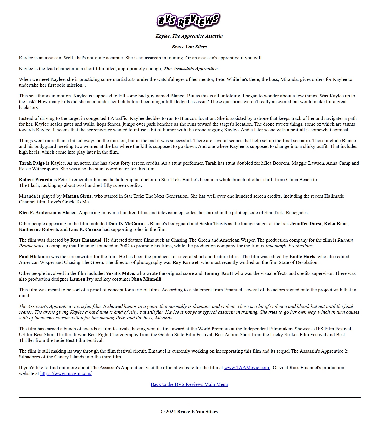 The Assassin's Apprentice Official Selection at the Hemet Film Festival.