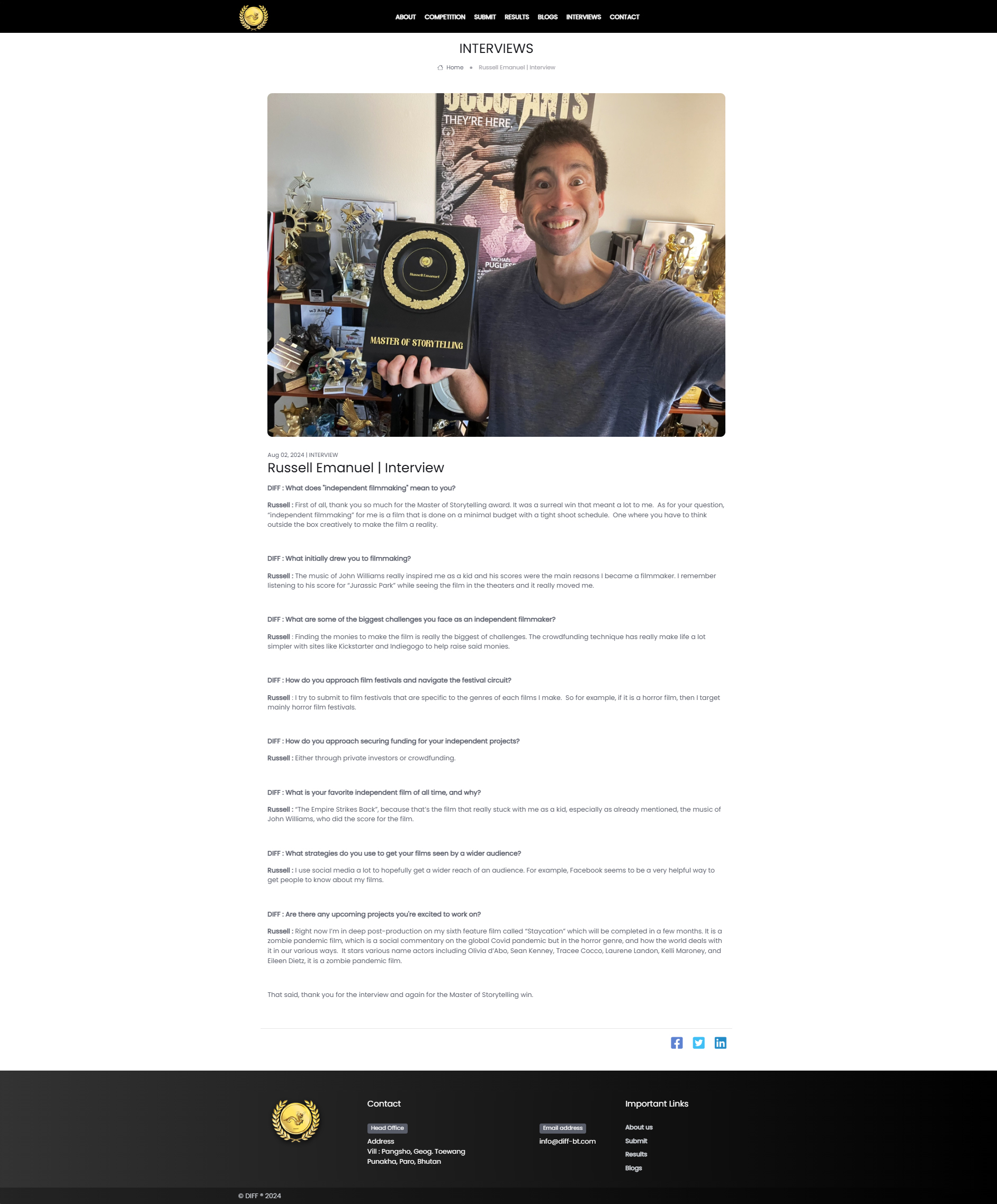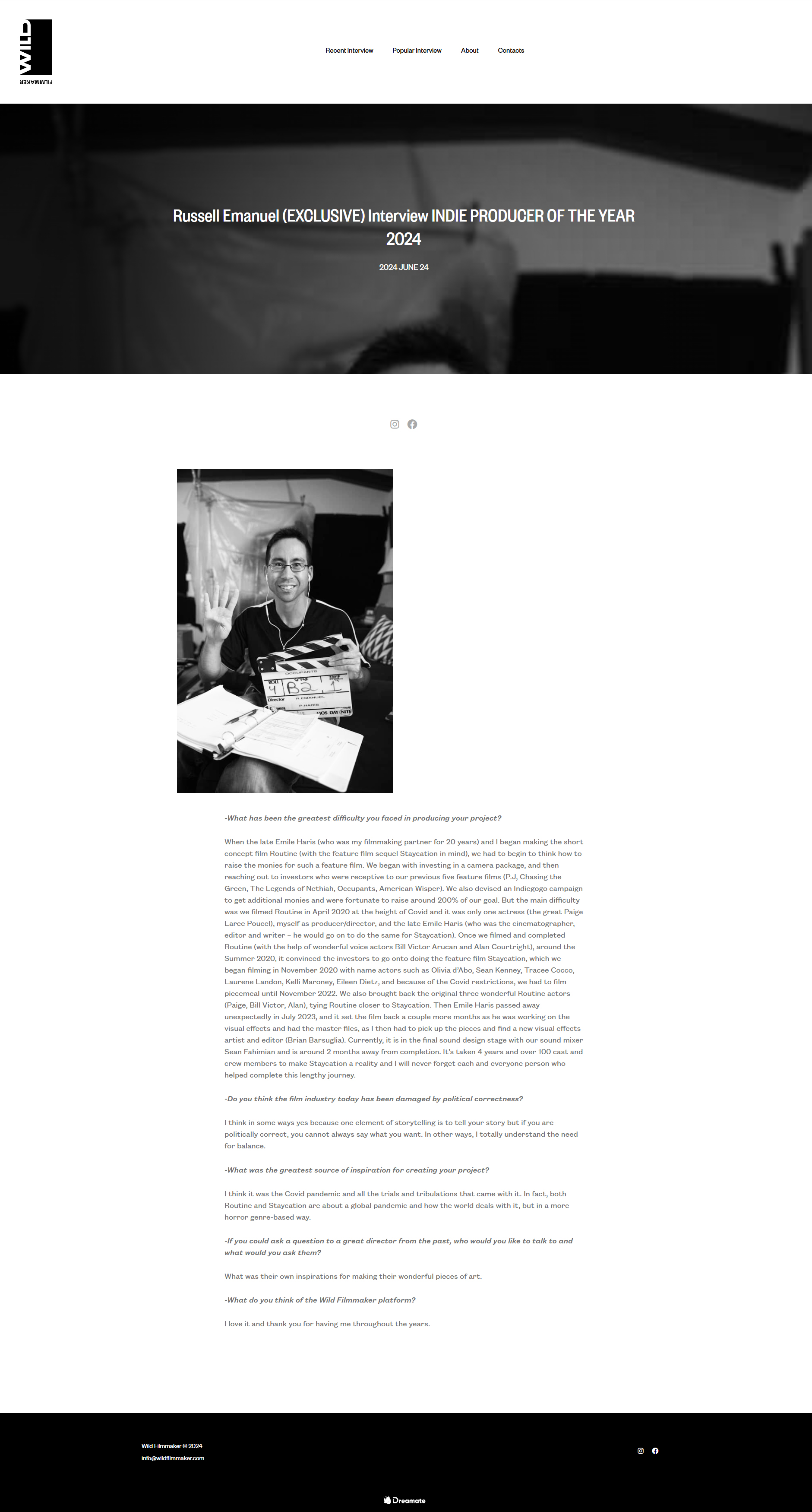 Award de Excellence Winner at the Paris Cine Fiesta, for various films including Staycation.