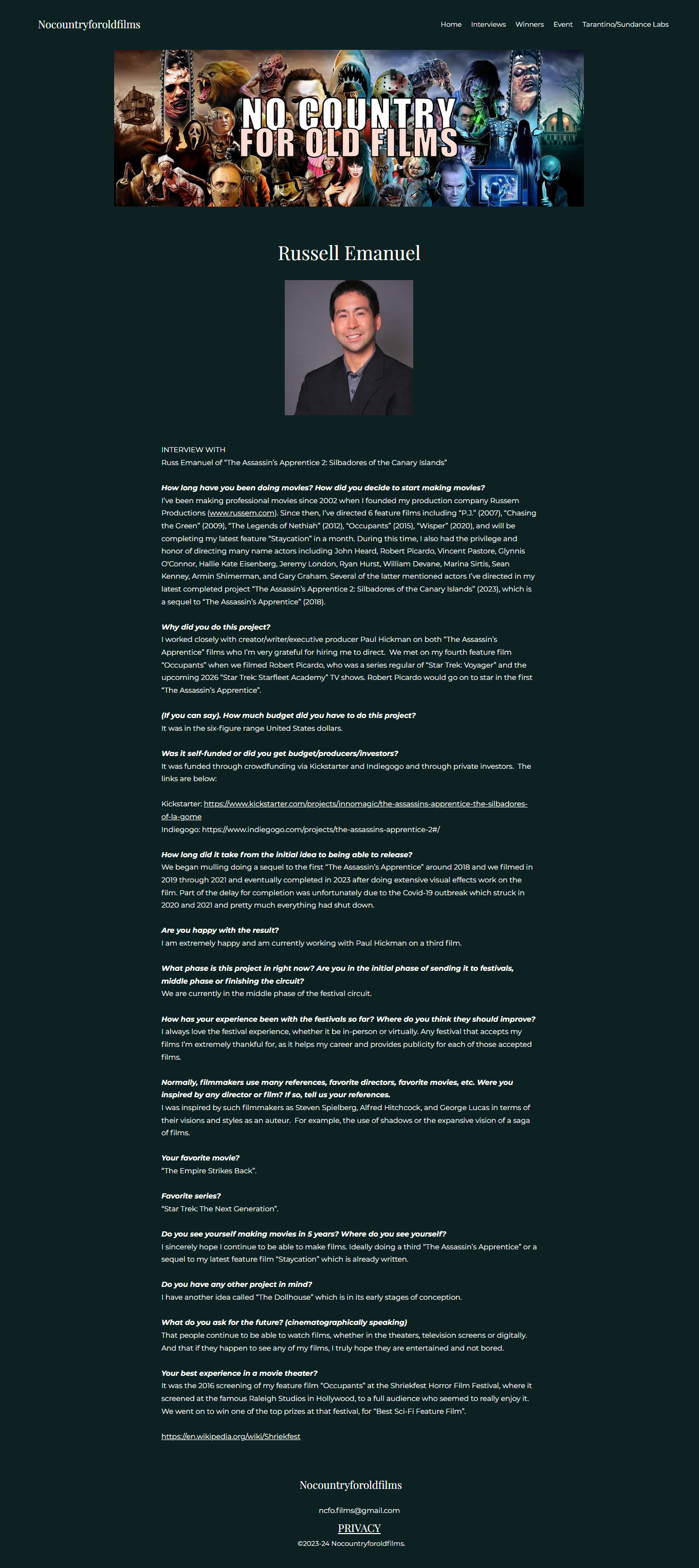 Director Russ Emanuel is interviewed by Dave K. Bise of Science Fiction Studios.