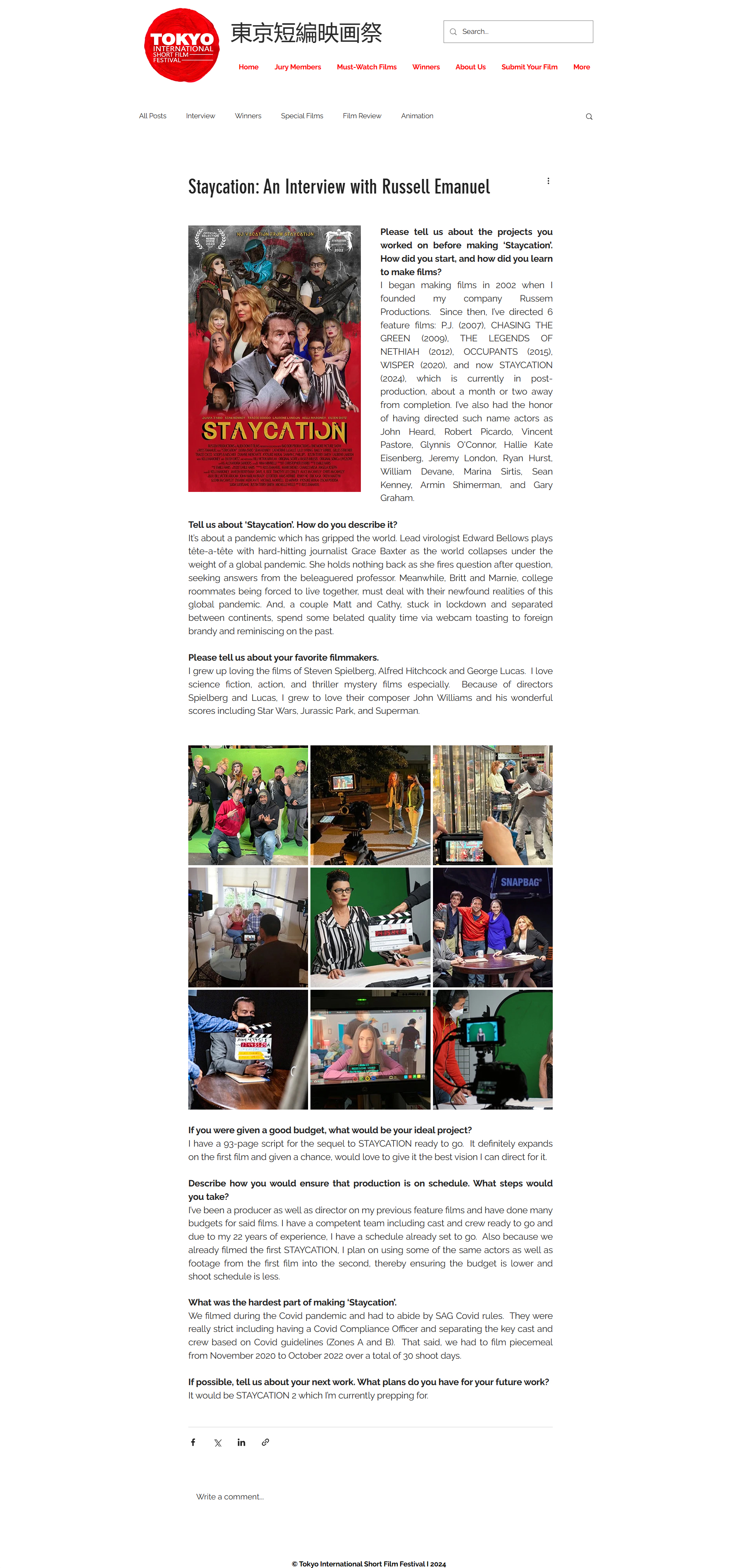 Staycation: Teaser Trailer Official Selection at the Japan International Film Festival - Best Trailer Winner.
